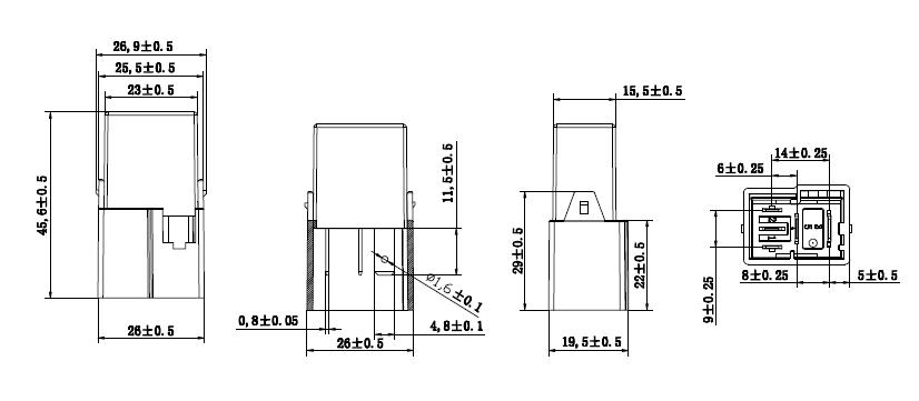 ● 一組常開、一組轉換兩種觸點形式