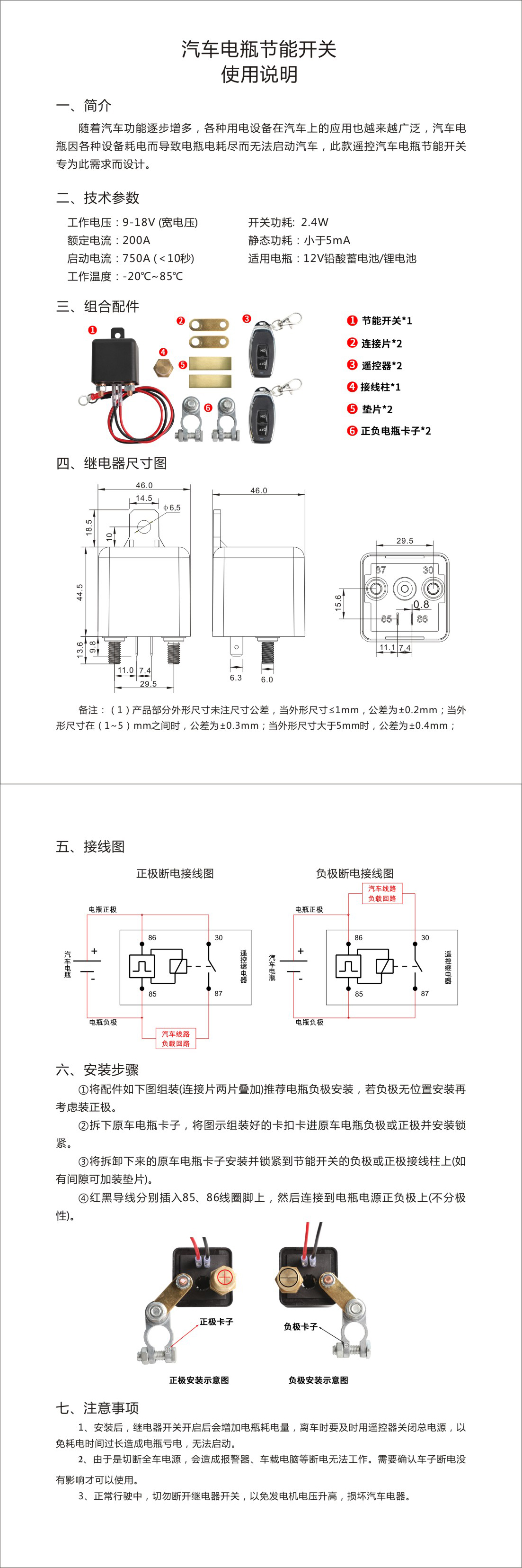 默認繼電器為12V-200A,電壓可選24V,電流可選250A;