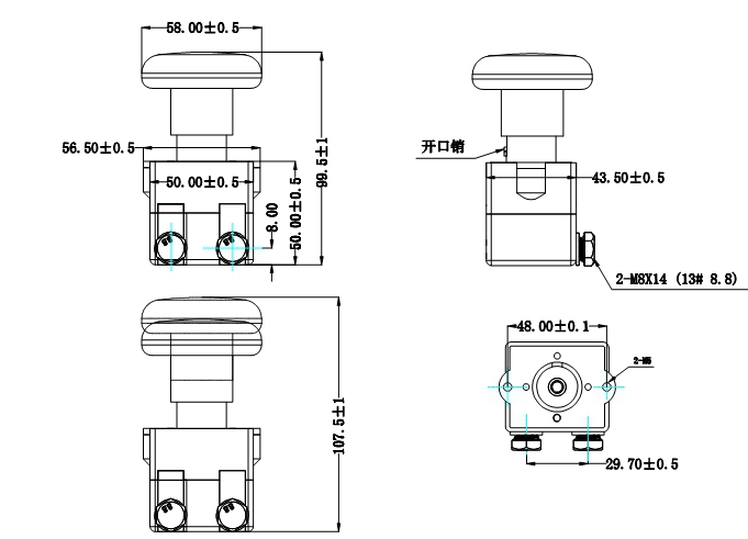 備注:(1)產品部分外形尺寸未注尺寸公差,當外形尺寸≤1mm,公差為±0.2mm;當外形尺寸在(1~5)m 當外形尺寸大于 5mm 時,公差為±0.4mm;